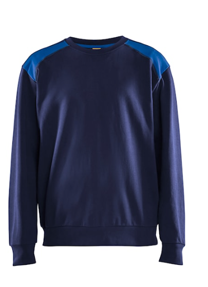 Comfortable, flexible, and round-necked sweatshirt with contrasting colors on the shoulder parts. Has rib knitted cuffs and is reinforced in neck and shoulder seams for extra durability.