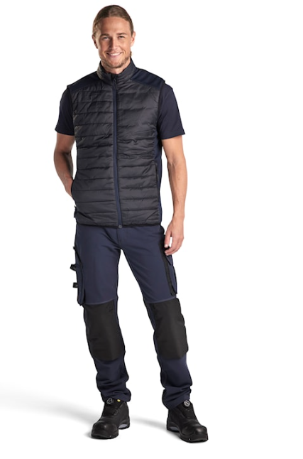 Quilted vest from Blåkläder’s Unite collection which is warmly lined on both torso and back. The sides and shoulder area of the vest are in knitted polyester, which contributes to the garment’s excellent mobility and comfort. Please note we do offer extended sizing – for more info contact us on 051 872649 or email info@mwmurphy.com.